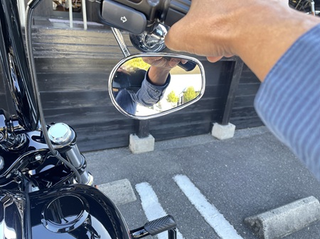 ハンドルカスタムや位置変更により、標準ミラーの見え方が変わってしまった場合は、ショートステムをロングステムミラーに変更等で後部視界を改善することができます。