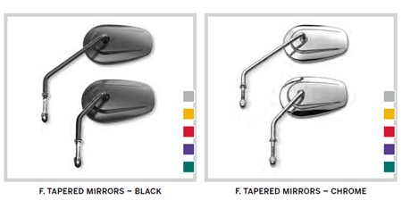 モデル毎に標準ミラーとして、ブラックとクロームの他、ショートとロングステムの設定があります。