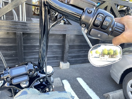 下斜めにステムが2インチ延びて鏡面位置が変わりますが、ライダー側からの外観デザインに大きな違いはありません。