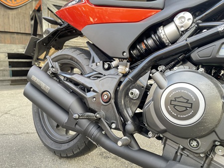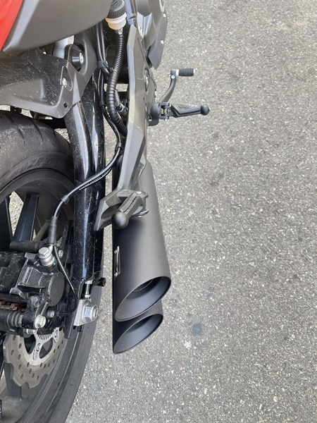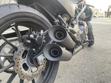 跳ね上がった2本マフラーで、精悍なイメージとなります。