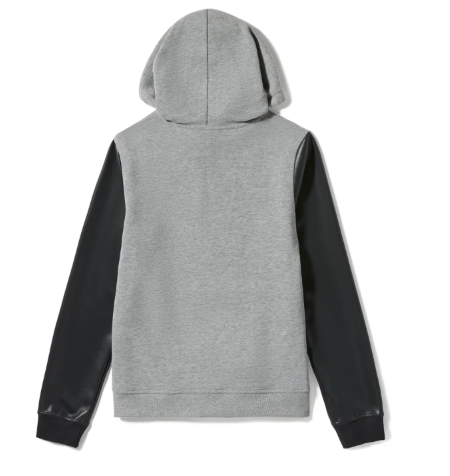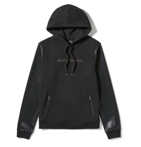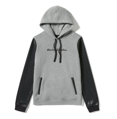 FAUX LEATHER SLEEVE PULLOVER HOODIE