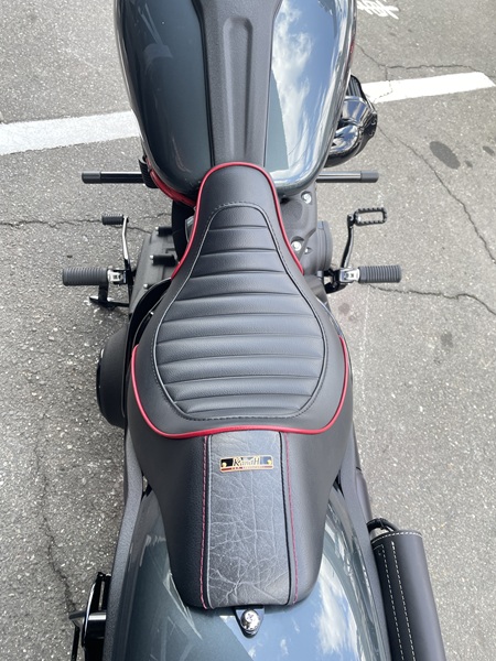 シート幅を抑えた作りで足つき性が良く、ノーマルシートより前方に着座でき、ポジションに余裕が生まれます。
