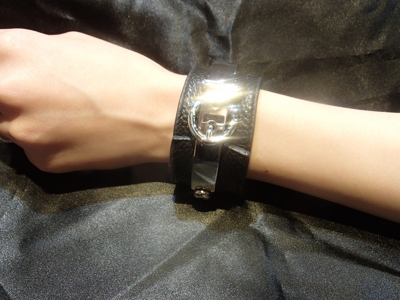 変った留め具が付いています。幅があり、スカルのデザインが入っているので、ややワイルド感があります。
