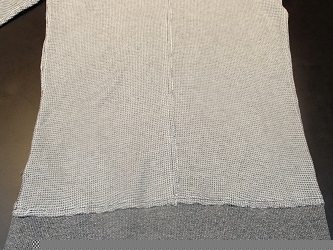 左胸にロゴ、首周りのカッティングがユニークな、ワッフル素材のロングTシャツです。