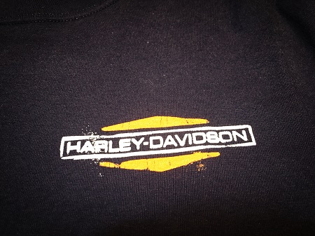 ステッチやボタン留めに、ハーレーらしいオレンジがあしらわれています。