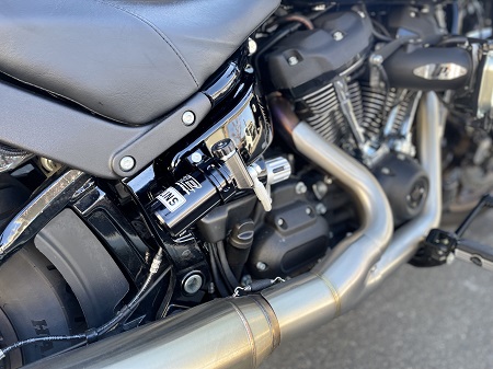すでにカスタム済みのエアクリーナーとジキル&ハイドマフラー、そしてインジェクションチューニングとフルカスタムのローライダーSです。