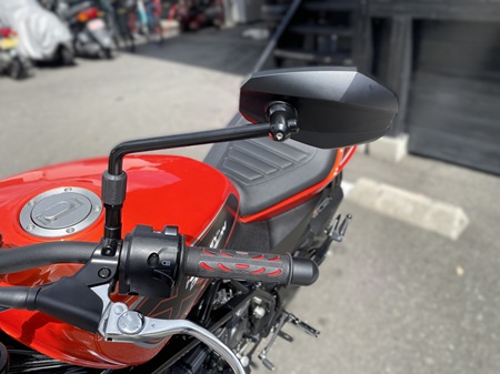 デイトナ製のミラーとグリップで、X350の雰囲気を変化。