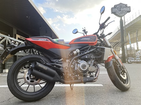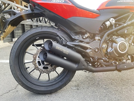 跳ね上がった2本マフラーで、精悍なイメージとなります。