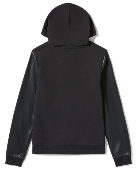 FAUX LEATHER SLEEVE PULLOVER HOODIE